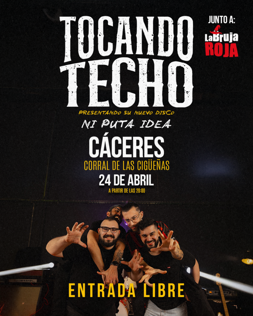 El próximo 24 de abril estaremos en Cáceres compartiendo escenario con La Bruja Roja en una noche que promete ser inolvidable. Presentaremos en directo nuestro nuevo disco Ni Puta Idea, cargados de energía y con un show que no va a dejar indiferente a nadie.